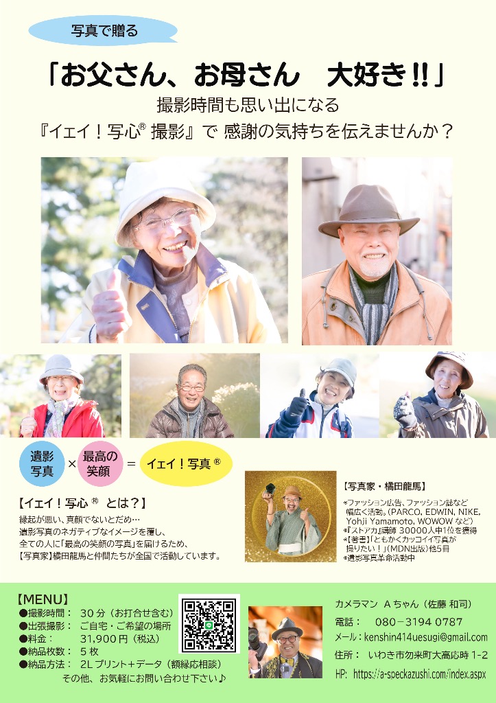 A-spec photエースペックフォトのAちゃんこと佐藤和司ですよね。今日は新しくイェイ写心のフライヤーを作成しました。これからどんどん広めたいと思います。