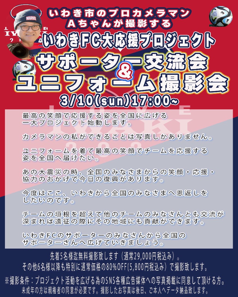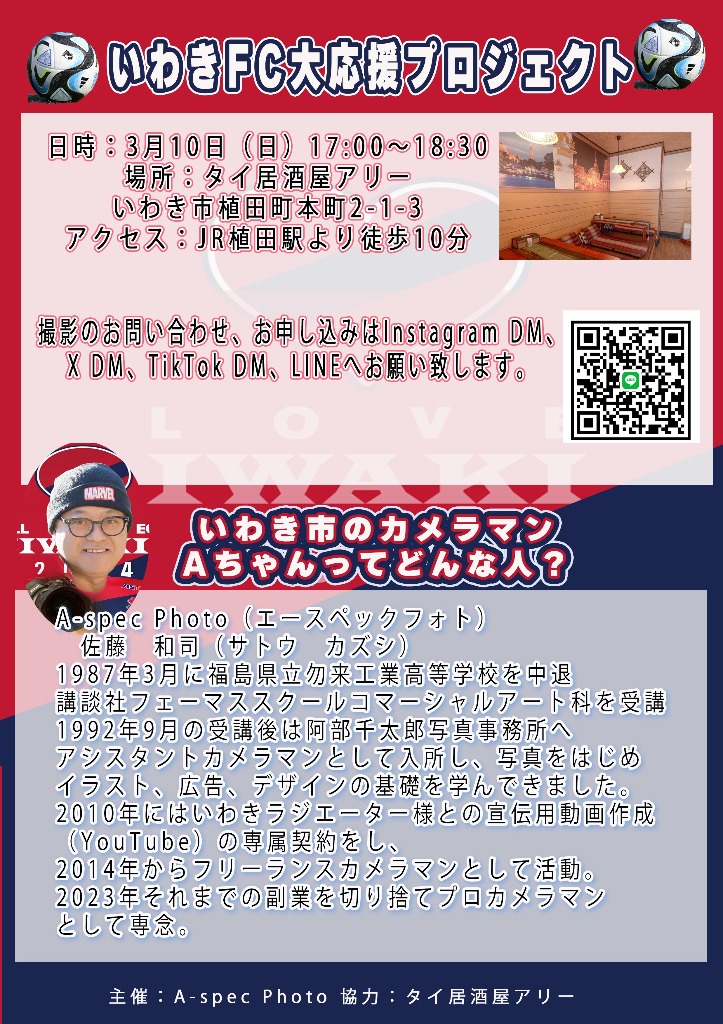 A-spec photoのAちゃん(佐藤和司)ですね。3月10日にいわきのFC大応援プロジェクトを