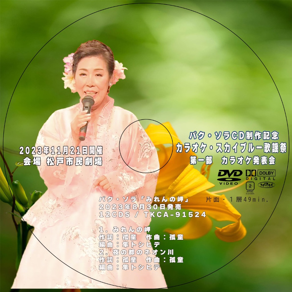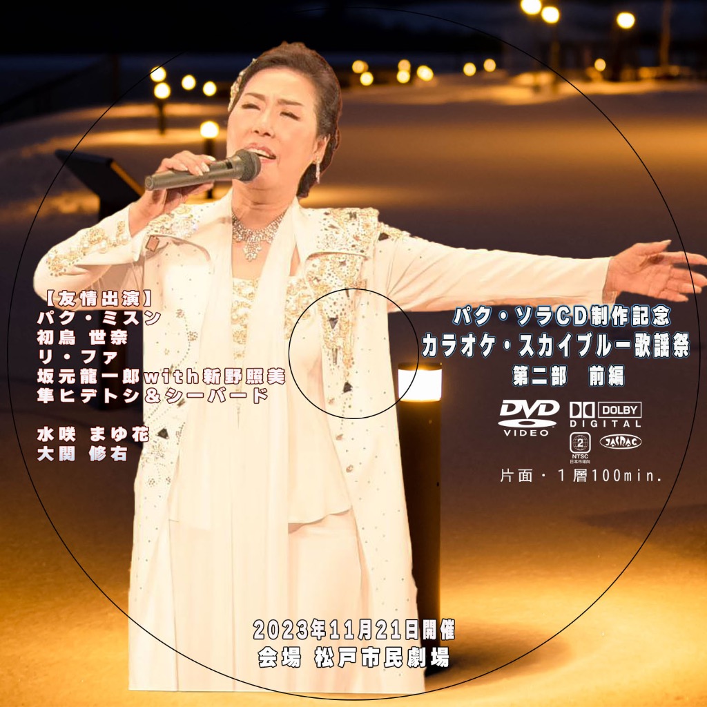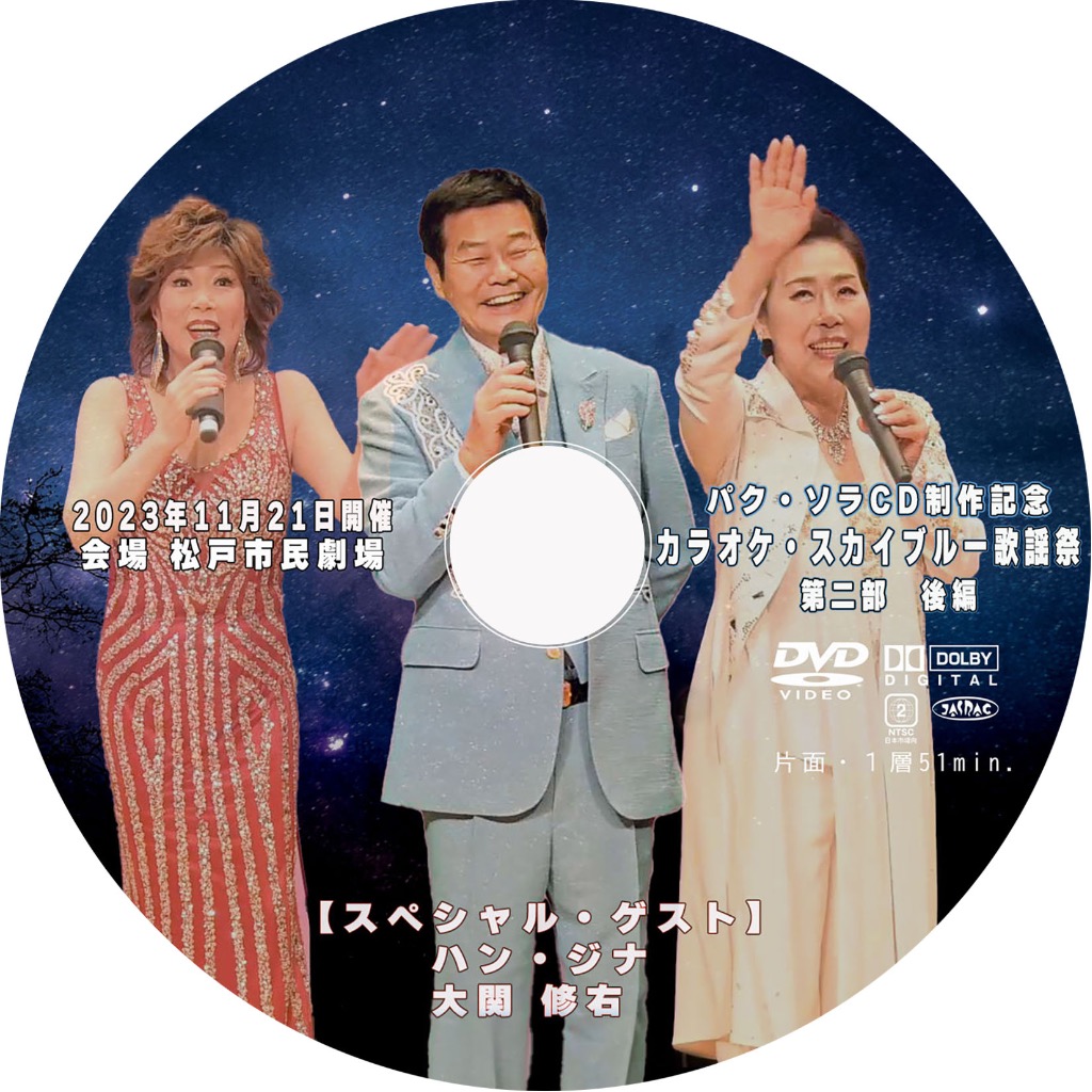 レーベルを作りました。パクソラCD制作記念 カラオケスカイブルー歌謡祭 第二部 後編はハンジナさん、大関さん、パクソラさん3ショットに背景は夜空に輝く満点の星空にしました。