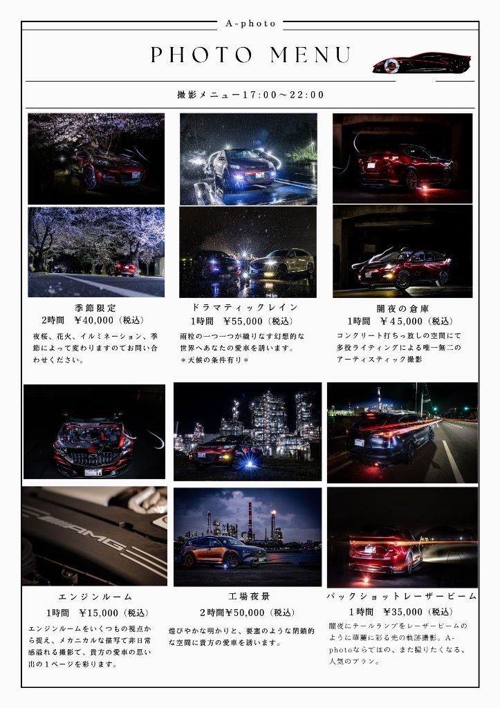 エースフォトのえーちゃんです。特に夜間のライティングを駆使した撮影には定評があります。今まで