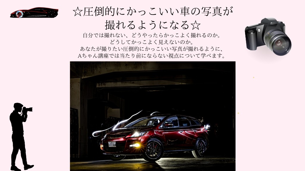 圧倒的にかっこいい車の写真が撮れるようになる。